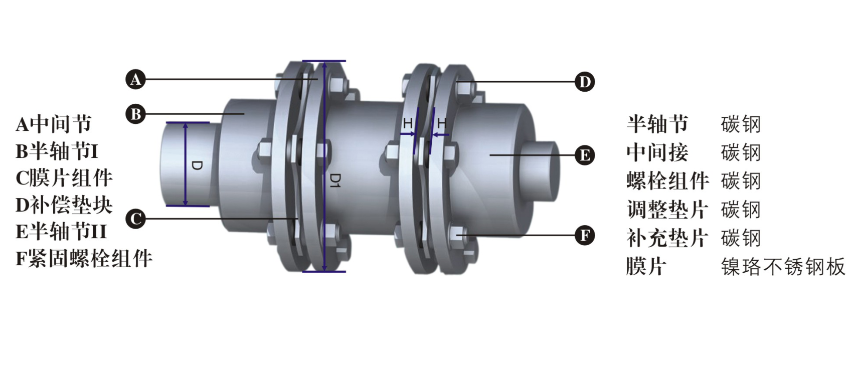 | 型号(T) | 最大轴径(D)mm | 最大功率KW | 公称扭矩Nm | 偏差补偿量 | D1 | H | |